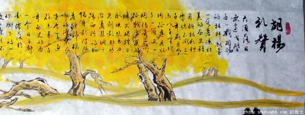 今天,过往,未来 三千年历史的每一个日子 都是零落于你脚下的一枚枚叶片 不管欢乐、痛苦、悲伤、幸福 曾经的屈辱与辉煌 都清晰地留存在 你三千年不死的灵魂深处 于是,你也成为一个传奇 以你磐石般坚毅的信念 用你生死不变的傲然之气 在苍凉无际的千里戈壁 独守你孤独的千年岁月 创造着一个个生命的神奇