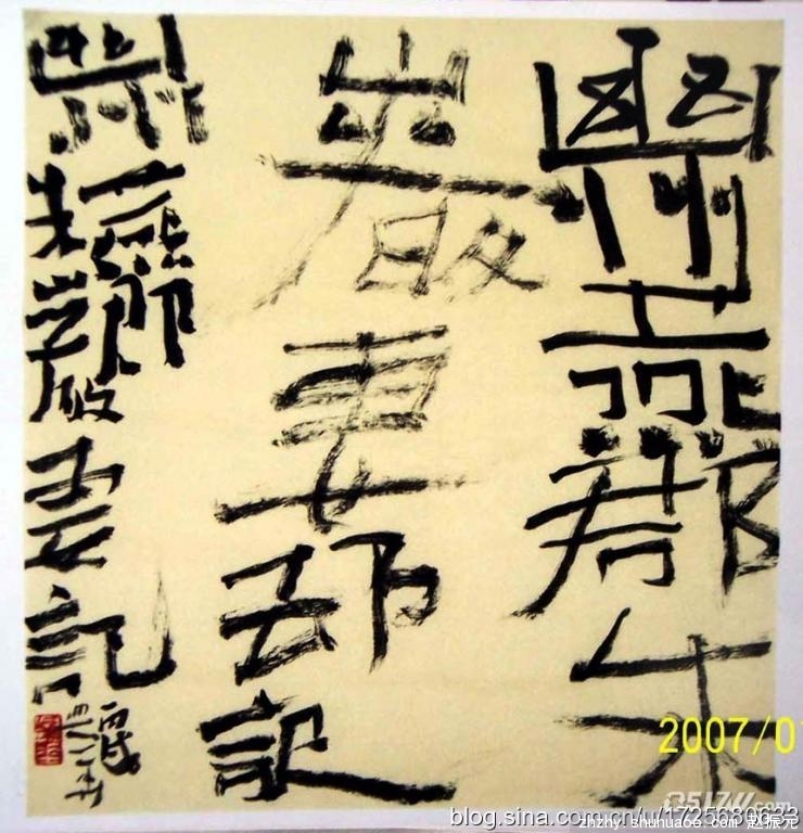 可能有人会问,这些人为什么舍美而求丑、死抱丑书不放?这个问题看似简单,其实并非如此。常言说得好:无利不起早!他们这些人不是脑瘫患者,也没有心理障碍,发育非常健全,智商可能还会超过常人。之所以死抱丑书臭脚不放的目的,无非就是一个“利”字!因为他们非常清楚,涉足书法领域,要想把字写好,需要讲传承、有创新,需要有“坐断板凳熬干灯”的精神准备,临池不辍。耐不得寂寞,下不了苦功,是难以奏效的。而他们又想急功近利,今天提毛笔,明天就拿钱,扎刀子就吃肉!这种浮躁、逐利心理,驱使他们舍本逐末,抛开传承,只讲“创新”、讲“特色”!他们的“创新”就是创出独特风格,追求“新”、“奇”、“怪”,讲究自己的“风格”,标新立异,什么“书圣”,什么颜、赵、欧、柳、苏、黄、米、蔡,我一律不“尿”他们,信马由缰地涂抹,就形成了自己既不古又不今的一家之风!记得一位哲人曾说过,世界上画鬼最容易!因为谁都没有见过鬼,无所谓美与丑、像与不像,怎么画都不过分。所谓 “现代书法”也正是如此,不讲传承,只重“特色”,没有了美丑标准,只要有自己的独特“风格”,自己再大言不惭地命名个什么什么“体”,标榜为什么什么“派”,便大功告成!一时间,书坛 “大师”遍地,山头林立,出现百“丑”齐放、万“怪”争鸣的局面!仿佛这些人一夜之间都成了“时代精英”!这种局面理所当然地遭到了正义之声的鞭挞!