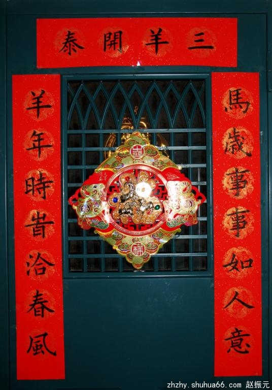 这是我自己书写的春联——马岁事事如人意,羊年时时洽春风。横批:三羊开泰。