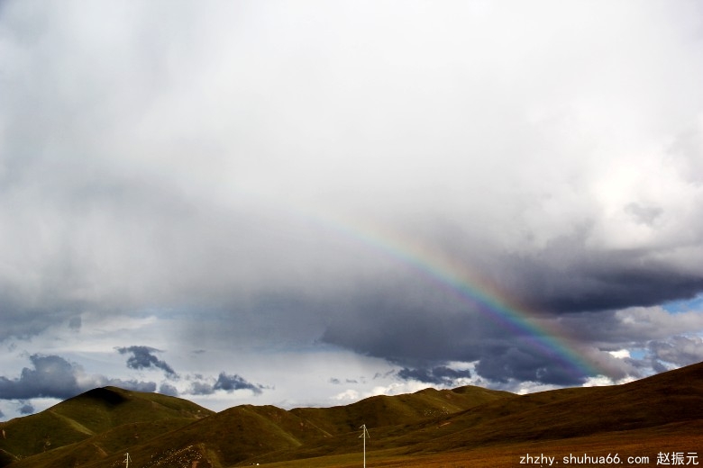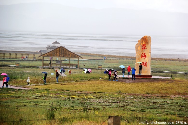 途径“尕海湖”,到景区一下车,就下起了中雨,我们冒雨在景区仓促拍了几张照片,就返回车里,继续向玛曲县前进。