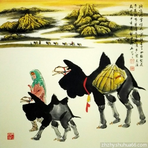 寂寞驼铃响声脆,嶙峋身躯负重行。