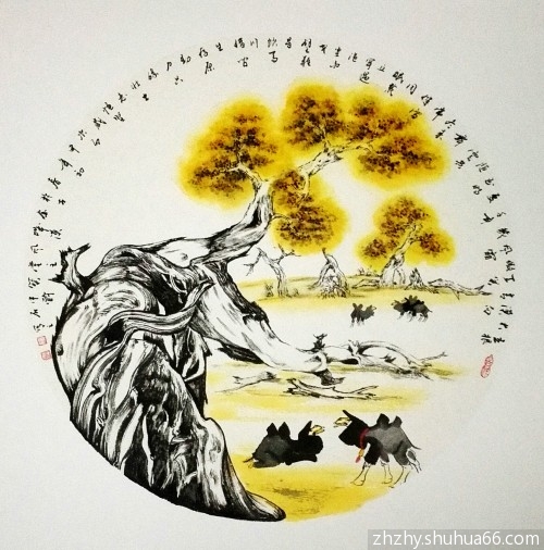 赵振元丙申新作——骆驼胡杨系列之60——65
