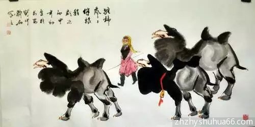 丙申新作,每日一画一书,胡杨骆驼系列之67“神驼声声伴旅程”;行书“养神”,请欣赏!
