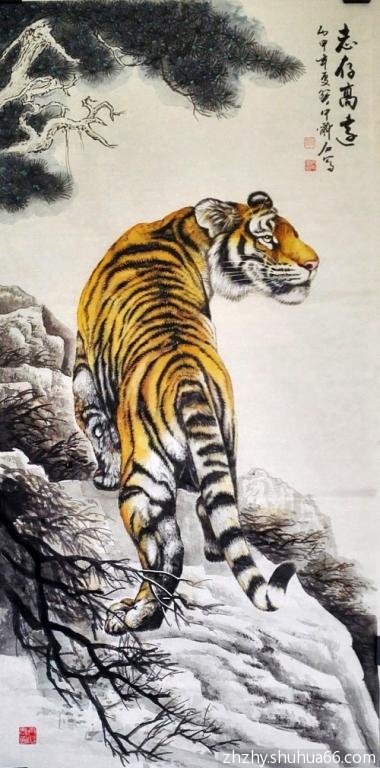 丙申新作,每日一画一书,花鸟画(老虎) “志存高远”; 行草书法“志存高远”,请欣赏。