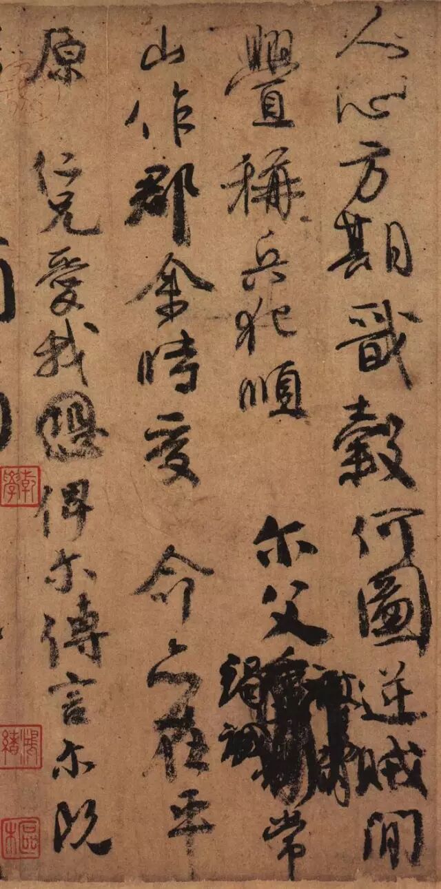 颜真卿《祭侄文稿》行草 纵28.2厘米,横72.3厘米 台北故宫博物院藏