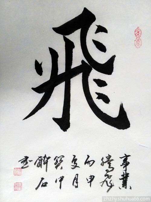 丙申新作,每日一画一书,胡杨骆驼系列之102 “漠上行”; 榜书“飞”,请欣赏。