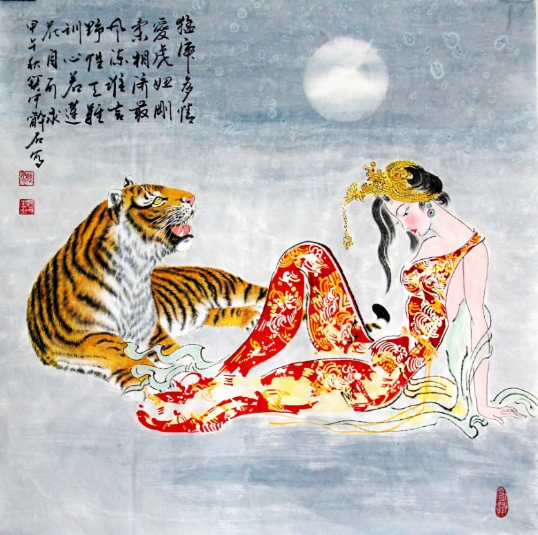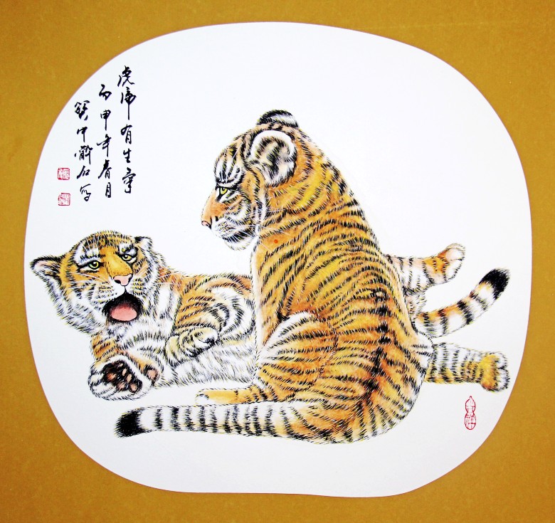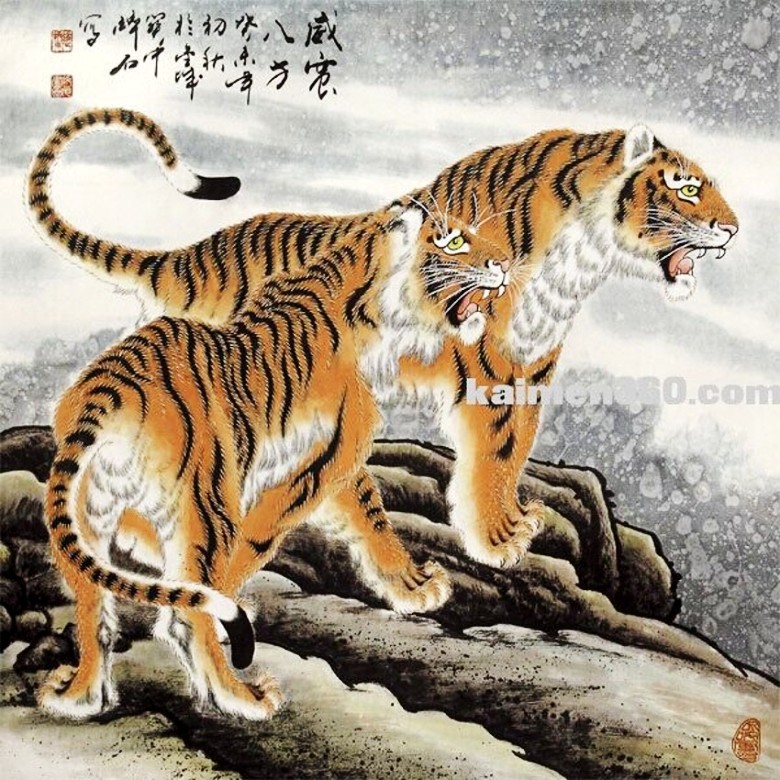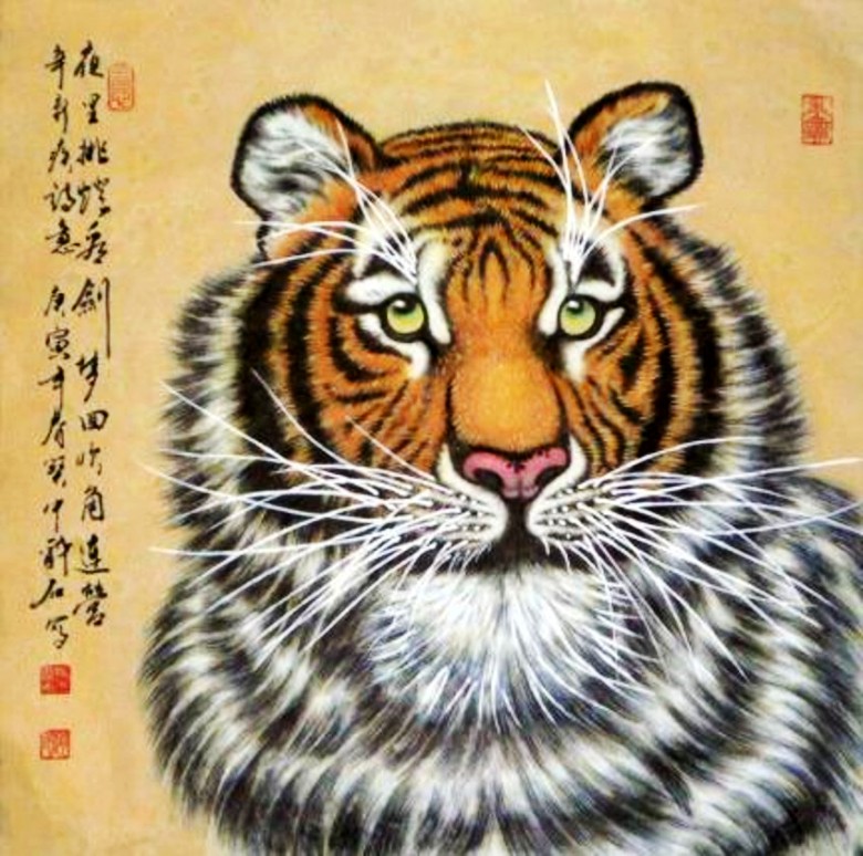 虎是百兽之王,谓山君、大虫、山大王,古称寅客、於菟、封使君、斑子、黄公。《说文解字》中说“虎,山兽之长也。”是威严、勇猛与力量的代表。在中国传统文化中,虎被民间当作福佑安康、除祸免灾的象征和福运的守护神。在远古时代,中华民族就通过岩画、壁画表达对虎的崇拜。千百年来,民间还流传着做布老虎、戴虎头帽、穿虎头鞋、悬挂虎画等辟邪的风俗。表达出拜虎求福的美好祈愿。