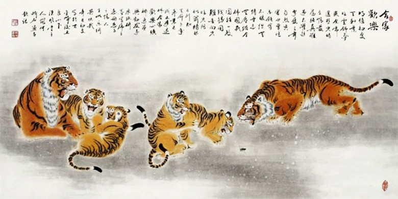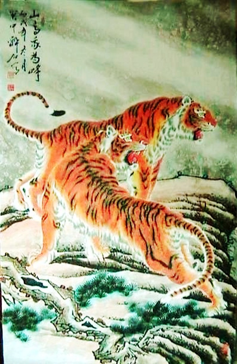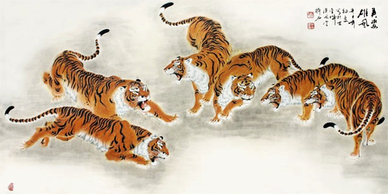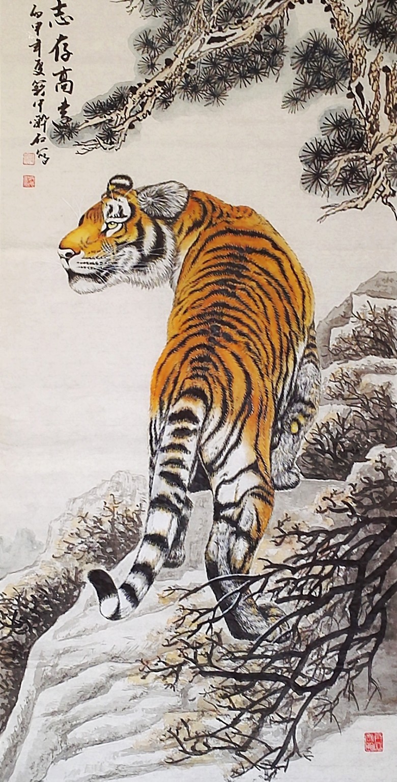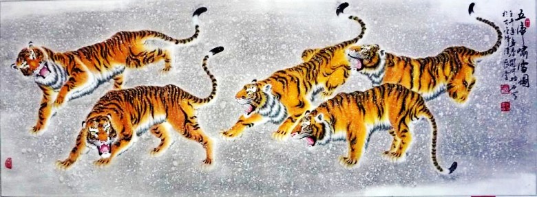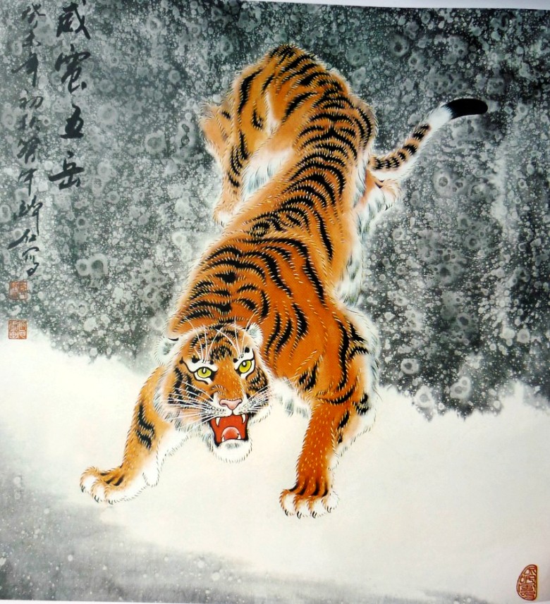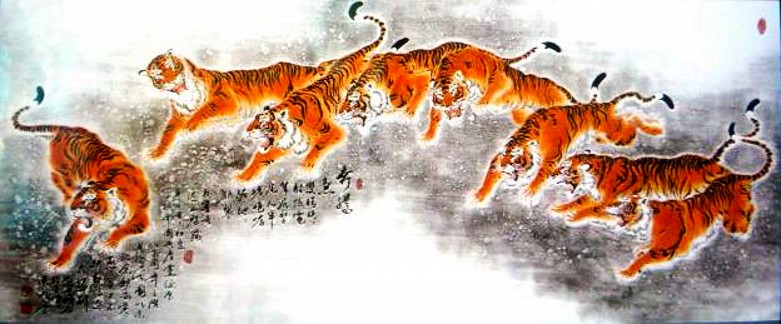 赵振元先生的画虎艺术,在很大程度上证实了中国古文化精华所在。他认为,只有仔细地学习传统,才能达到“业精于勤”的境界,他坚持“读万卷书,行万里路”,永远走自己的路。正如明代大画家董其昌所说“作画不从摹古入,必坠恶道。”