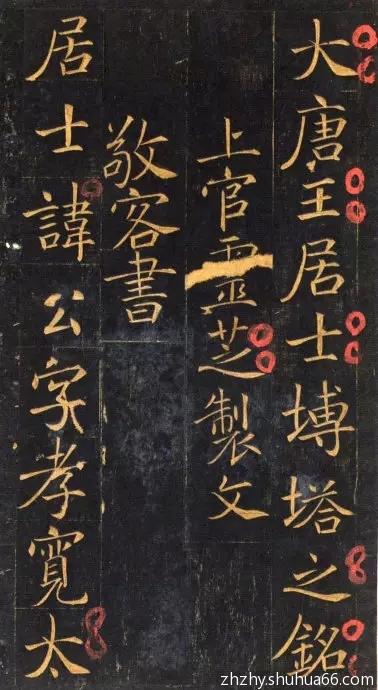 钱泳《跋王居士砖塔铭》曰:“《王居士砖塔铭》近日所传者非断本即翻刻本,要如此之精拓而完善者鲜矣。余尝谓唐初书家各立面目,惟是刻能兼率更一欧阳询一、中令(褚遂良)之长而独出机杼,此其所以妙也。”今观此铭,楷法精妙,体势俊逸,风神挺秀,深得欧、褚意法而又能自出机杼,无疑为唐楷中之佼佼者。