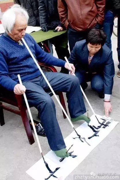只要看到有镜头在,或正襟危坐、或玉树临风、或仙风道骨状等。表演丰富,融合气功、太极、街舞等成份,或斗笔乱飞、墨花四溅,或地摊杂技如双钩书、空心体、左手书、反书倒书、嘴巴、脚丫执笔…
