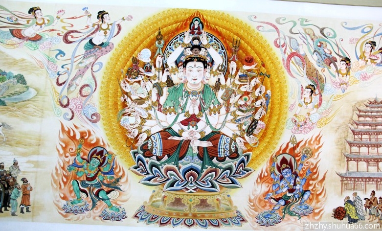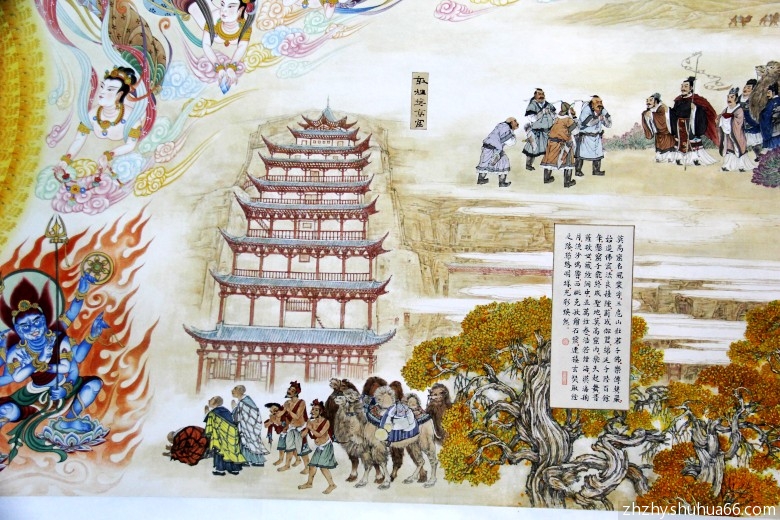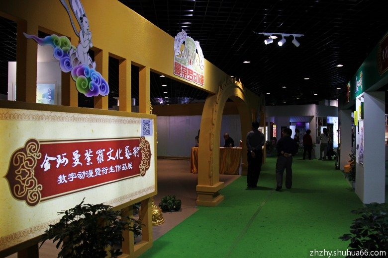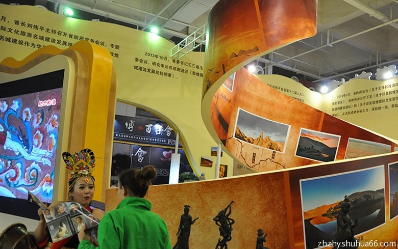 甘肃展区由3个专题展区构成,总面积超过2200平方米,主要展示甘肃文化艺术精品。通过丰富的图片、影像、文字、实物等,重点展示始祖文化、长城文化、石窟文化等9个方面的内容,着重反映厚重的历史文化;“甘南唐卡艺术展”展出甘南唐卡艺术精品,国家级传承人希热布现场展示唐卡绘画艺术,在动静结合的艺术氛围当中,参观人员仿佛走入神秘的雪域高原佛教艺术走廊,切身感受到了唐卡艺术的无穷魅力。“洮砚上的敦煌——雕刻艺术展”邀请8家洮砚生产企业,展示“仿宋明系列”“国学系列”等雕刻艺术作品。