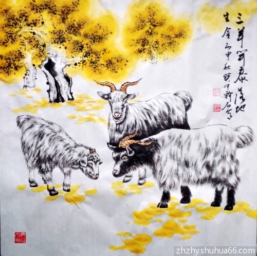 赵振元丙申书画新作——每日一画一书,花鸟画新作三羊开泰 72 楷书239