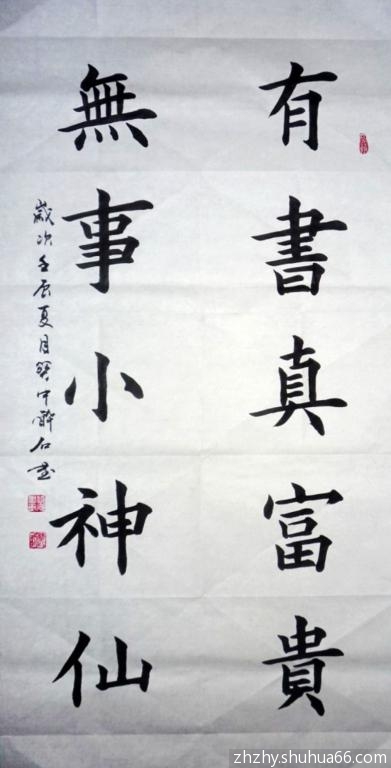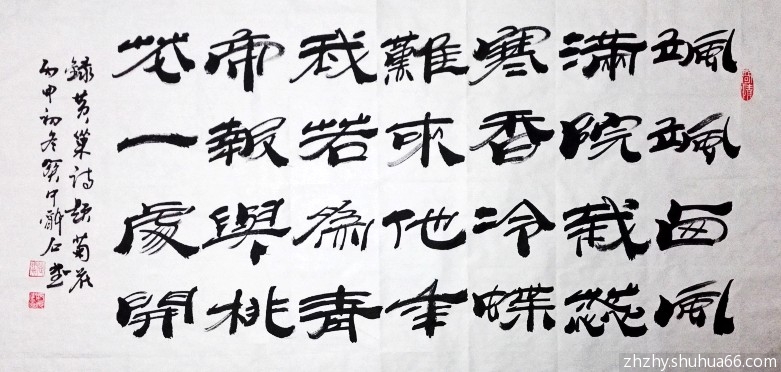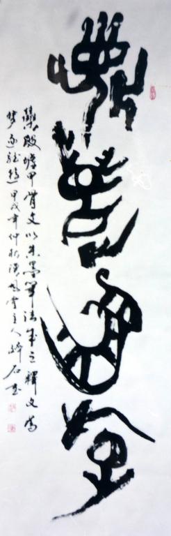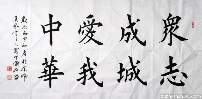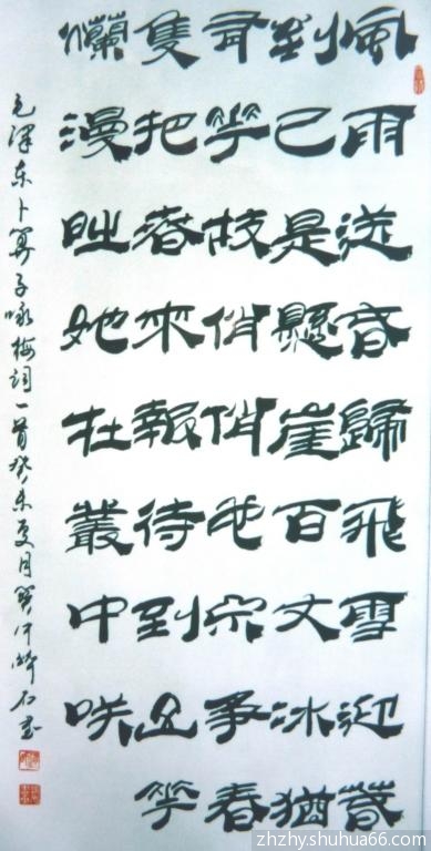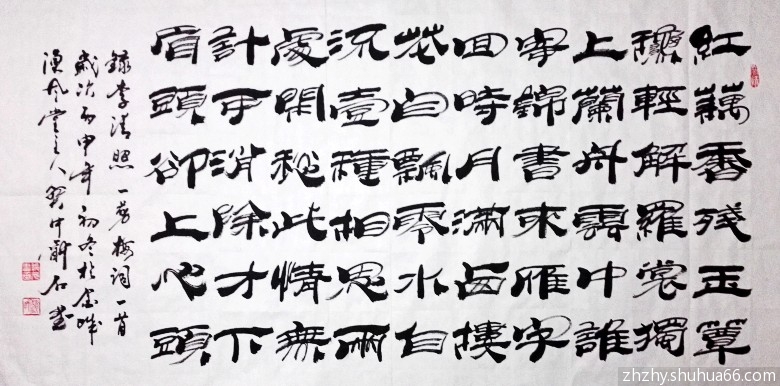 我的书法以欧楷、行草和隶书为主,兼顾它体。其隶书融篆、隶、汉简、帛等为一体,力求古朴凝重,苍劲挺拔,舒展流畅之神韵。为了学好书法,我遍临历代名家碑帖,不论是甲骨文、大篆、小篆、汉简、帛书、隶书、楷书、草书、章草、狂草、篆刻和多种美术字(如黑体、宋体、仿宋、魏体)等,我都去钻研。七十年代后期,我迷恋上篆刻。就到兰州城购买石头,一买就是一大堆。回到部队,陶醉在方寸之间。所以才有了我的号——醉石。