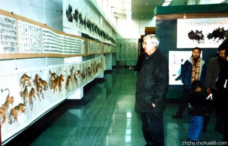 七十年代,由于部队驻地偏僻,在绘画技法极缺的情况下,我利用节假日到省图书馆、市图书馆找资料,借回来一遍一遍地抄写、临摹,虚心钻研古今名家有关名著和技法。所以至今还保留着十多本抄录的书籍。为了画老虎,我自己养了八只猫,每天观察猫的神态,终于形成了自己的风格。1999——2000年,我利用八个月的时间,精心创作了长30米的“百虎图”。以其磅礴的气势倍受广大观众的青睐。