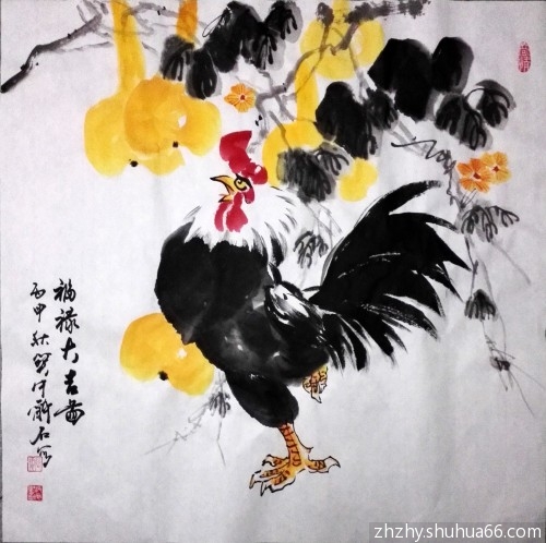 赵振元丙申书画新作——每日一画一书,花鸟画新作鸡“福禄大吉图” 76 楷书243