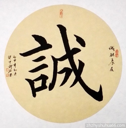 丙申书画新作,每日一画一书, 胡杨骆驼系列——团扇“大漠风情”160,团扇榜书“诚”270,请欣赏。
