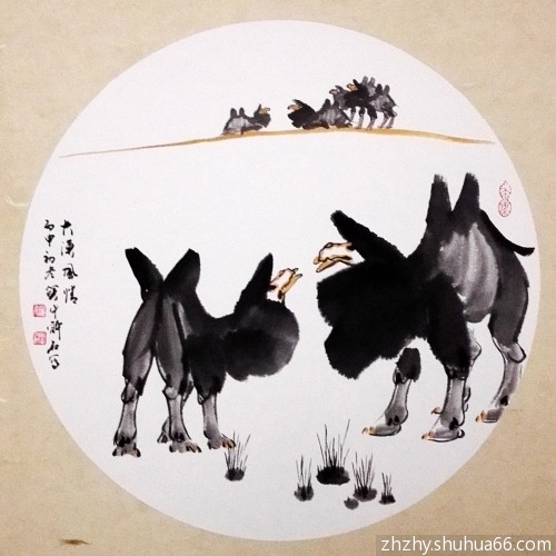赵振元丙申新作——每日一画一书,胡杨骆驼系列——团扇160, 团扇榜书270
