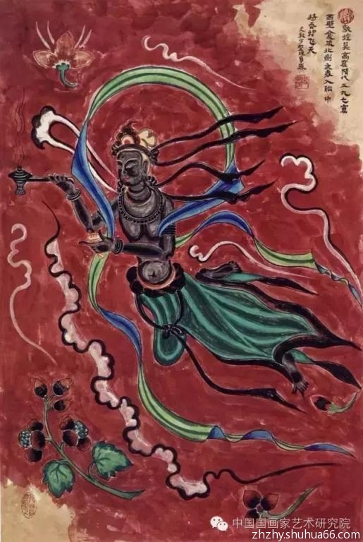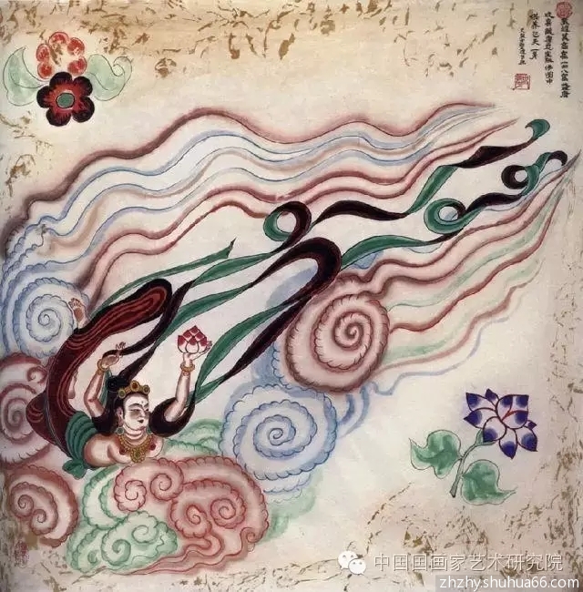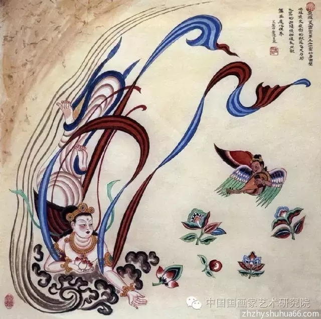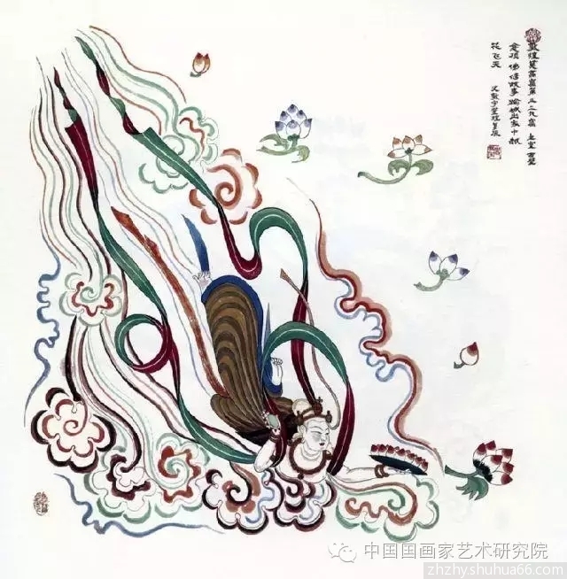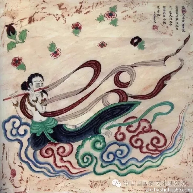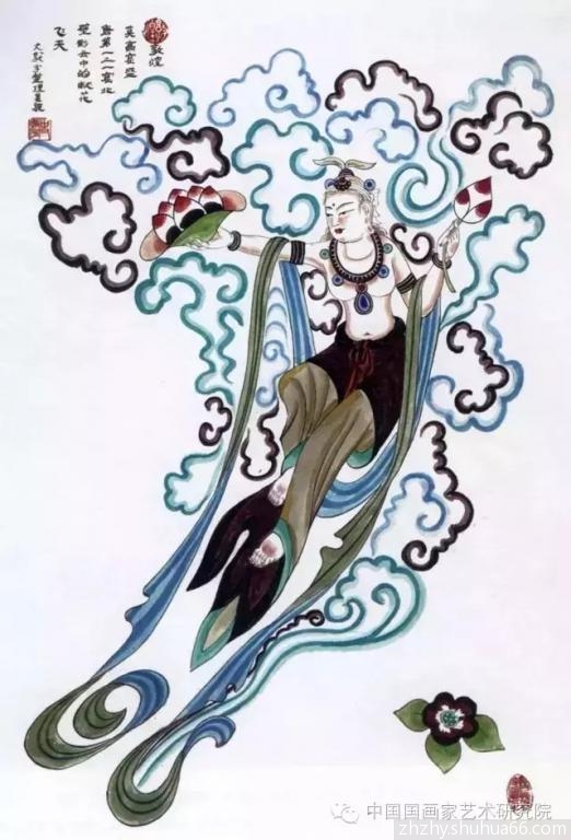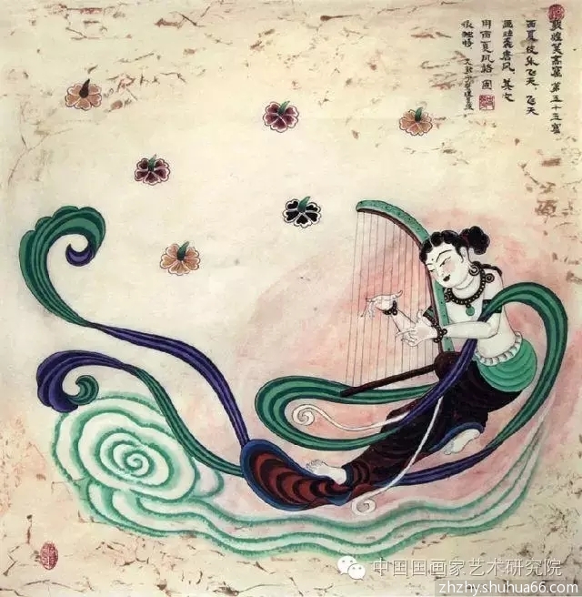 飞天在徐徐下降飞翔中献花,迦陵频伽奏乐助兴,天花在流云中漂浮,更显灵动活泼。今日最新日志“微信”搜索【artcnz】查看公众号历史消息