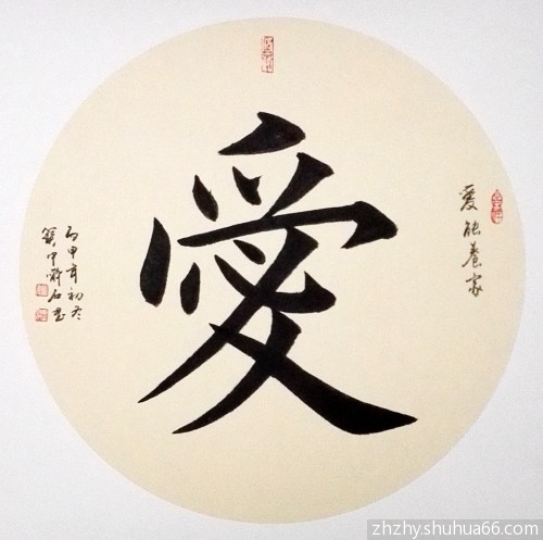 丙申书画新作,每日一画一书, 胡杨骆驼系列——团扇“古道连绵千万里,驼铃叮当情深长”之161,团扇榜书“爱”271,请欣赏。