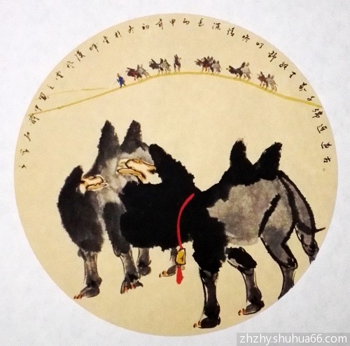 赵振元丙申新作——每日一画一书,胡杨骆驼系列——团扇161, 团扇榜书271