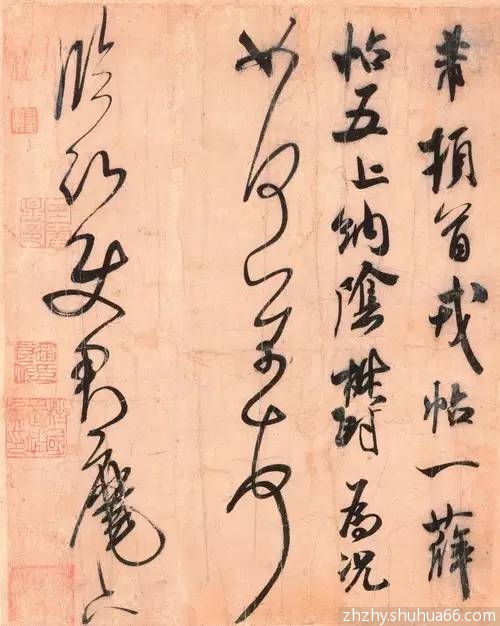 其规律是:“饱笔渗化快,渴笔渗化慢”(其中墨的水分大小和纸质的吸水性大小不能忽略)。为使墨的控制准确而合度,如何把握笔速就是关键环节了。其要领是:“饱笔须快,渴笔宜慢”。