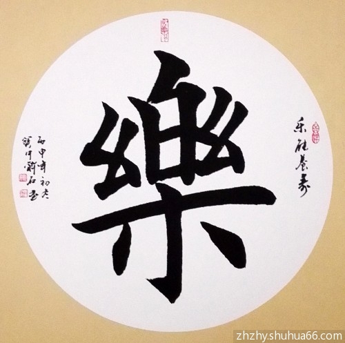 丙申书画新作,每日一画一书, 胡杨骆驼系列之“驼铃幽月最牵情”之167,团扇榜书“乐”277,请欣赏。