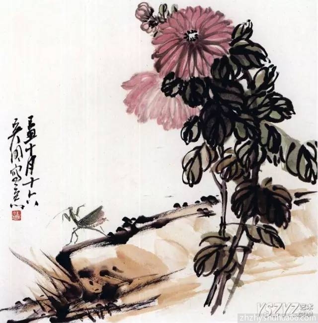 步骤三:画面干后加昆虫补空白之处,与花形成呼应之态。