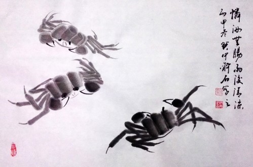 ”这是一首描写虾蟹的诗句。寒假期间,我与小孙子赵子杰一起学习画虾蟹,这些是我画的示范作品,今陆续发上来,