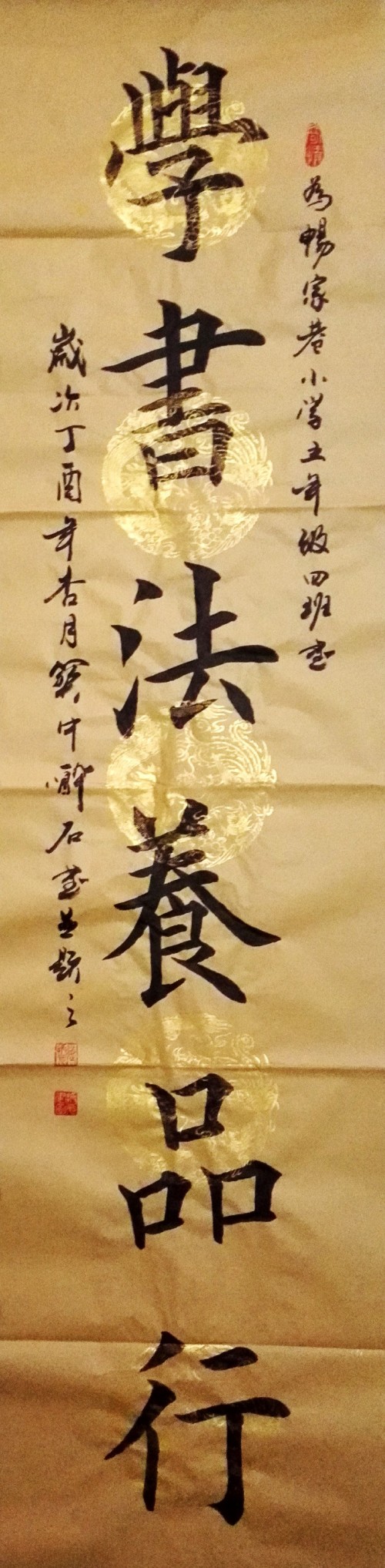 “不随骚人踏雪去,愿由孺子驱驰来”。书法“学书法,养品行”这是为兰州市城关区畅家巷小学五年级四班书法专栏而创作作品,并祝愿小朋友们在书法学习中能取得更好的成绩,为弘扬中华优秀传统文化做出更大贡献!