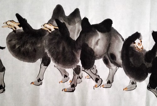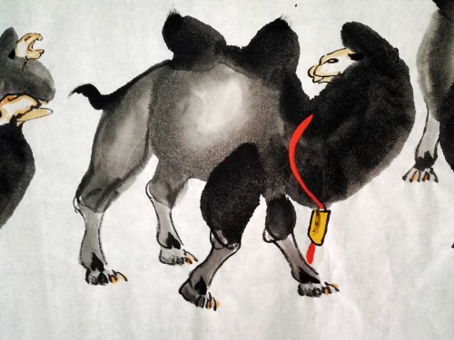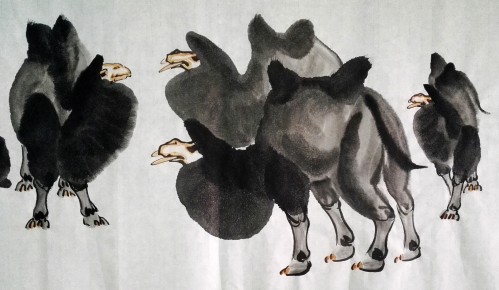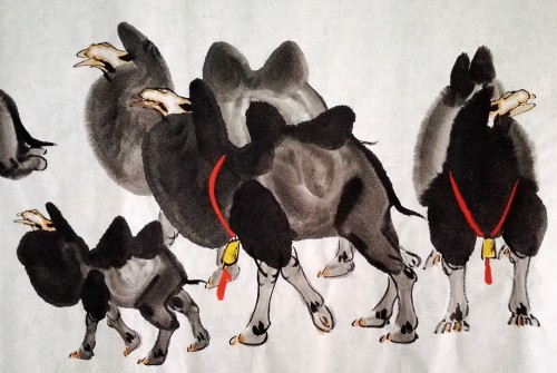 乾坤许大,步高丘而超迈,雅丹时露,志胡杨而卓立。任重道远,不言而信;探水识途,与天合契。食粗草、缮性情、骈厚掌、薄嗜欲。为人遮风挡沙,跪而不失威仪。负重无怨无悔;品行可歌可泣。合天地之本真,探征程之意义。纵遇走石迷天、狂风肆虐、滴水难求、炙烤无蔽,仍执著而跋涉,不改奋进之目标;一路金铃,洒下如花之足迹。遇危难,真情相依;遭巨变,不离不弃。当大任,直可托负生命;出古道,畅行何曾退惧。越时光之皱褶,慰旅人之孤寂。悲英雄之埋骨,载昊天之期冀。求道者,历练品格;苦行者,挑战耐力。不经忧患,莫知生命之极限?不经跋涉,莫知路途之迢递。修远兮,以慰云霓之高望;泱漭兮,涵养心中之静谧。坚韧平和,为他人劳筋累骨;缓步轻蹄,将旅人负出炼狱。