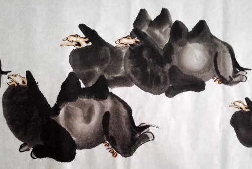 赵振元“一带一路,一书一画”,每日新作78——101,书法78——79。最近几天,我利用一周时间创作了这幅长30米的“百驼图”。今发表部分局部照片,请欣赏。
