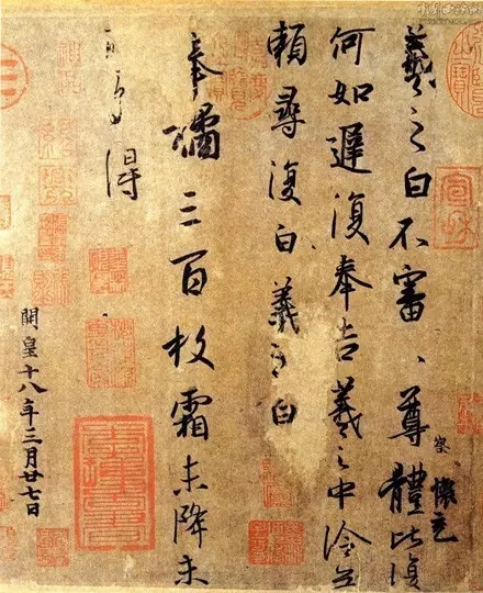 这是王羲之笔法最为重要的特征。篆隶遗韵是篆书和隶书书体所呈现出的高古、朴拙、厚重、苍茫、大气的精神美。《东观余论》有评价:“晋史称王逸少书暮年方妙,升平帖升平二年书,距其终才三载,正暮年迹也。故结字比乐毅告誓诸帖尤古质,殊类钟元常,浑浑然有篆籀意,非遇真赏未易遽识也。”