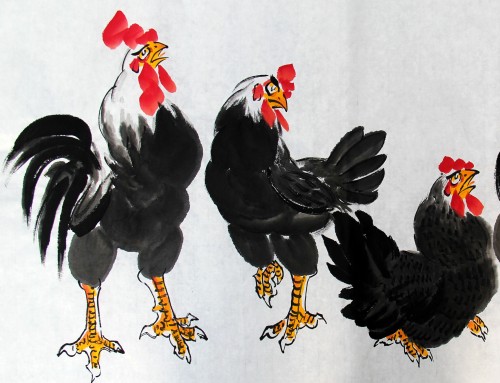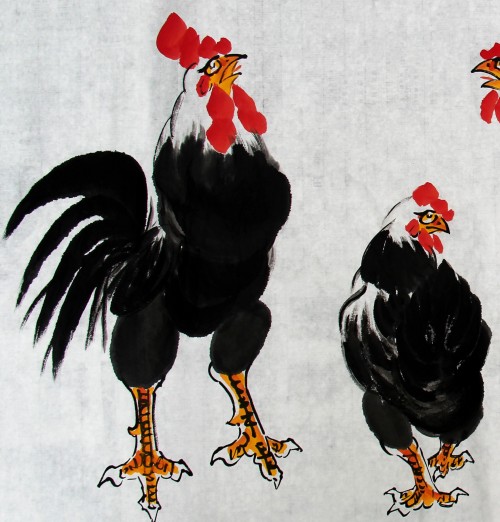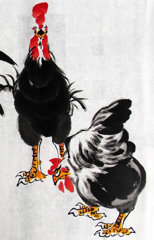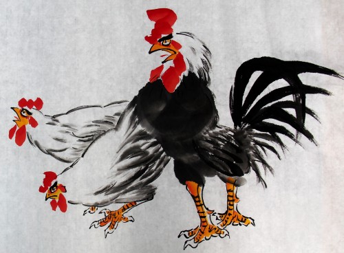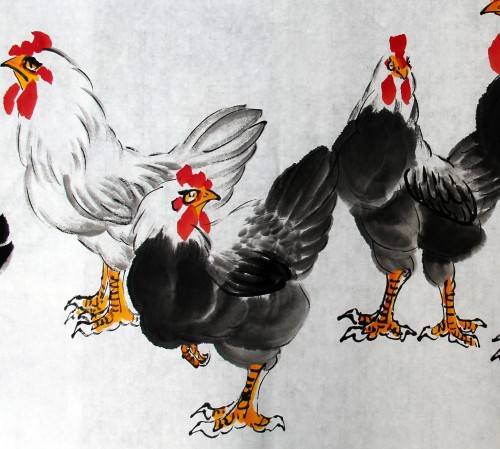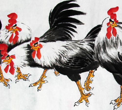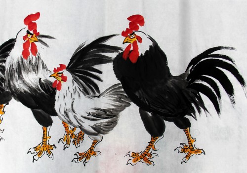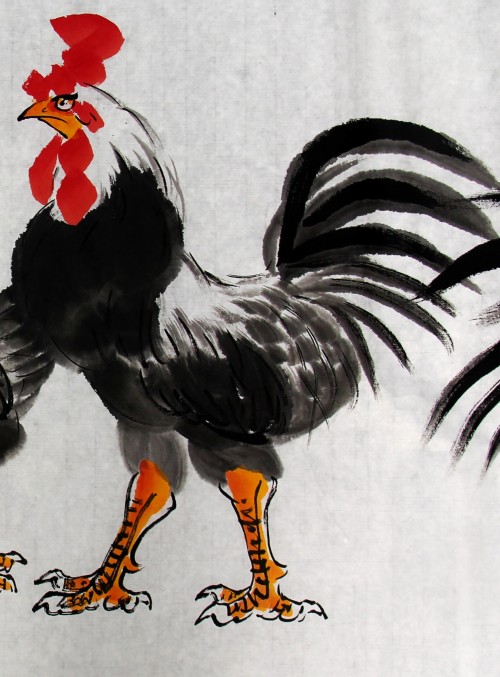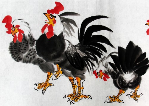 鸡者、吉也,祖先将大年初一定为“鸡日”。年从吉日开始,寓意开春迎吉,吉庆有余。华夏鸡文化,博大而精深。古书记载,鸡系“五德之禽”:“头顶冠文也,足搏距武也,敌在前敢斗勇也,见食相呼仁也,守夜不失时信也。”故唐人赞曰:“不为风雨变,鸡德一何贞!在暗常先觉,临晨即自鸣。”金鸡没有凤凰之缥渺虚幻,不象雄鹰之展翅蓝天。却与我们息息相关,与我们朝夕相伴。晨鸣,对光明之渴求,对希望之坚持呼唤;生蛋,得鸡命之延续,对于人类之无私奉献!