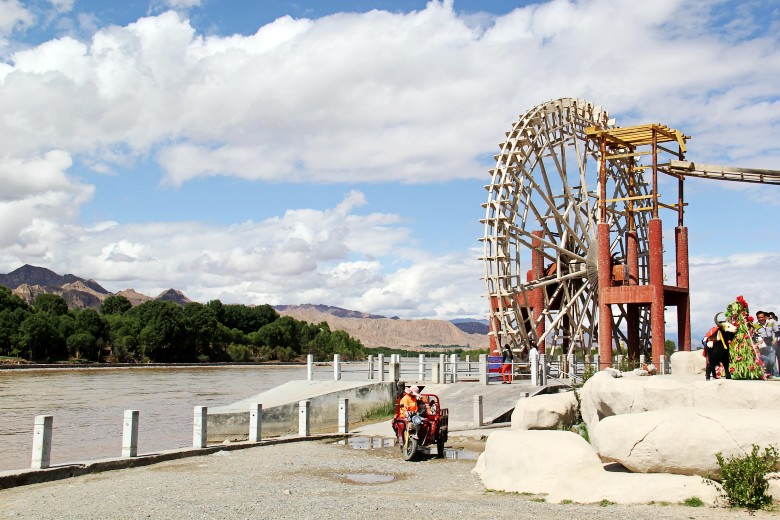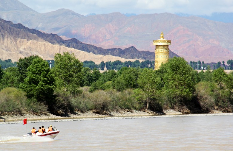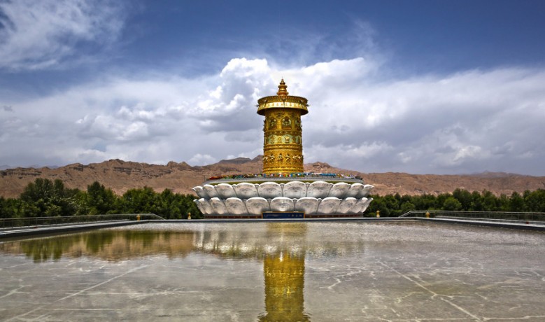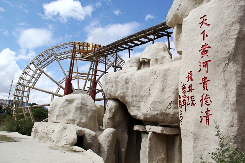 贵德以“感恩黄河,祈愿世界和平,中华民族和谐繁荣”为创意,在这里修筑了“贵德中华福运轮”景区。“中华福运轮”由莲花基座和嘛呢筒两部分构成, 莲花基座高15米,共有48个白色巨型花瓣组成(据说目前为亚洲最大)。更为奇妙的是,塔基第一层内引入了黄河之水,可以利用水轮推动内部的三亿部玛尼经文徐徐旋转。