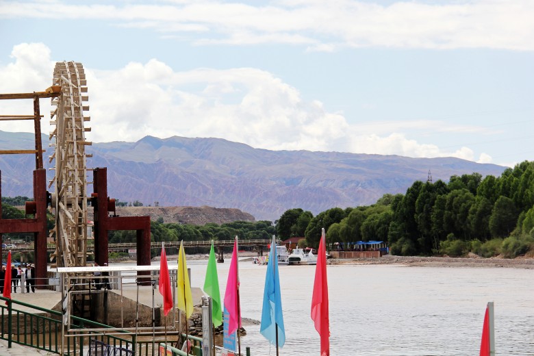 22日下午,我们来到位于黄河南岸滨河路畔的黄河水车广场。直径20米的巨大木质结构的古朴典雅水车,在夕阳落日的余晖中展现着别样的身姿与风采,与蓝天、碧水、丹山勾画出了一幅动人的黄河风景长卷。