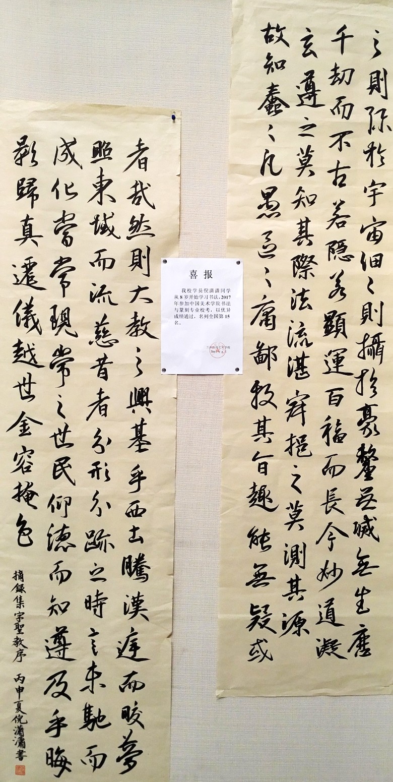 此次共展出甘肃龙文化研究院,西部艺术学校学生的书法、国画、水粉画、素描,儿童画作品80余幅。他们的作品率真中呈现童趣,稚嫩中流露出个性,从不同侧面表现出他们对自然界、对生活的理解和感悟,反映出他们丰富多彩的精神生活,展示对祖国传统文化的热爱以及对美好艺术的追求。