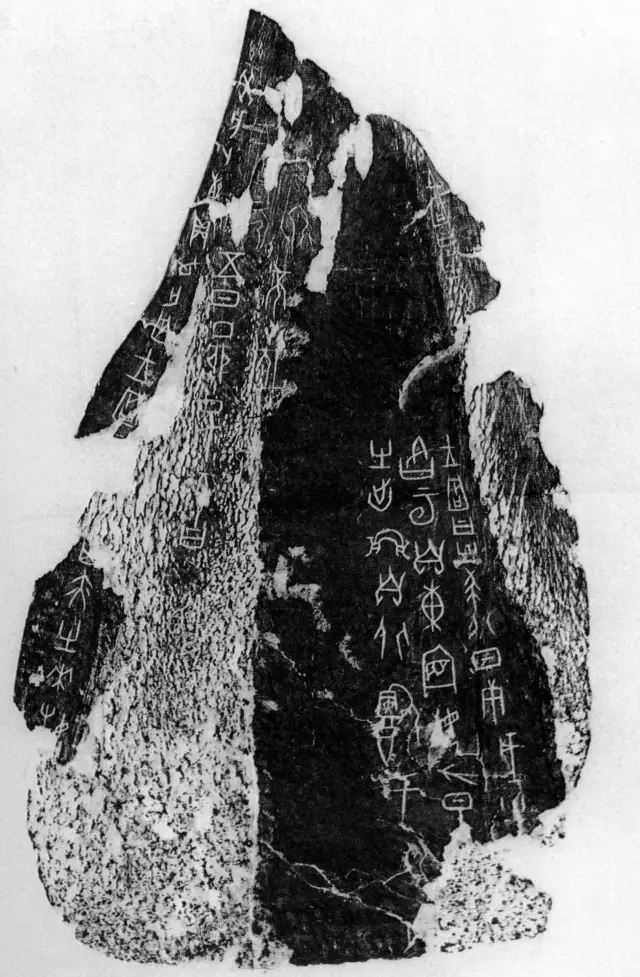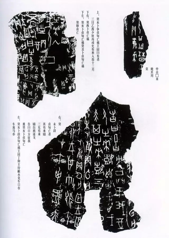 随着商的灭亡和商都(在现在的河南省安阳小屯村)变为废墟而长期埋没于地下。直到1899年,这些殷墟的遗物才被人们发现,一下子变成了珍贵的历史文献。从此以后,经过多次发掘,出土甲骨已选十万片左右。近年来又在陕西发现了西周的甲骨文。甲骨文的发现,不仅为研究上古史、汉语史等增加了新的文献,也为我们研究古文字书法和书法史提供了可靠的资料。
