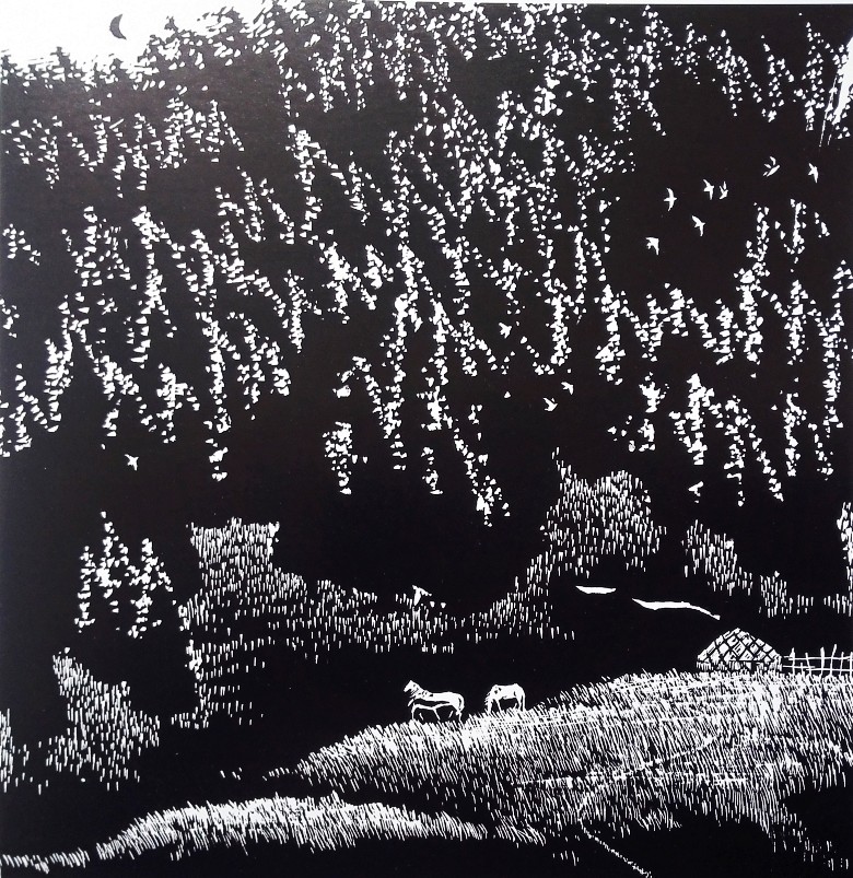 刘过之先生喜欢版画艺术,尤其对黑白木版画情有独钟,他认为黑白分明是木刻语言最极端的形式,也是最单纯、最洗练、最抽象、最富装饰感来表现最强列的感觉影响,富有力度的造形语言和艺术表现魅力,其作品追求黑白的对立和谐,便黑白间产生着多层次的美感,使用刀法上也讲究韵味和旋律感,或精雕细刻,或粗犷奔放,大刀阔斧,细而不腻,奔放而不粗糟。