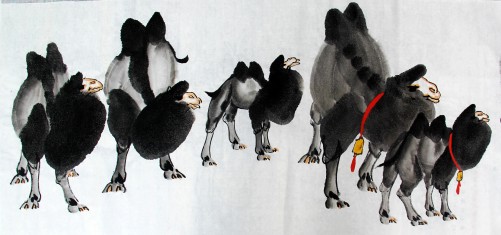赵振元“一带一路,一书一画”。骆驼胡杨系列,
