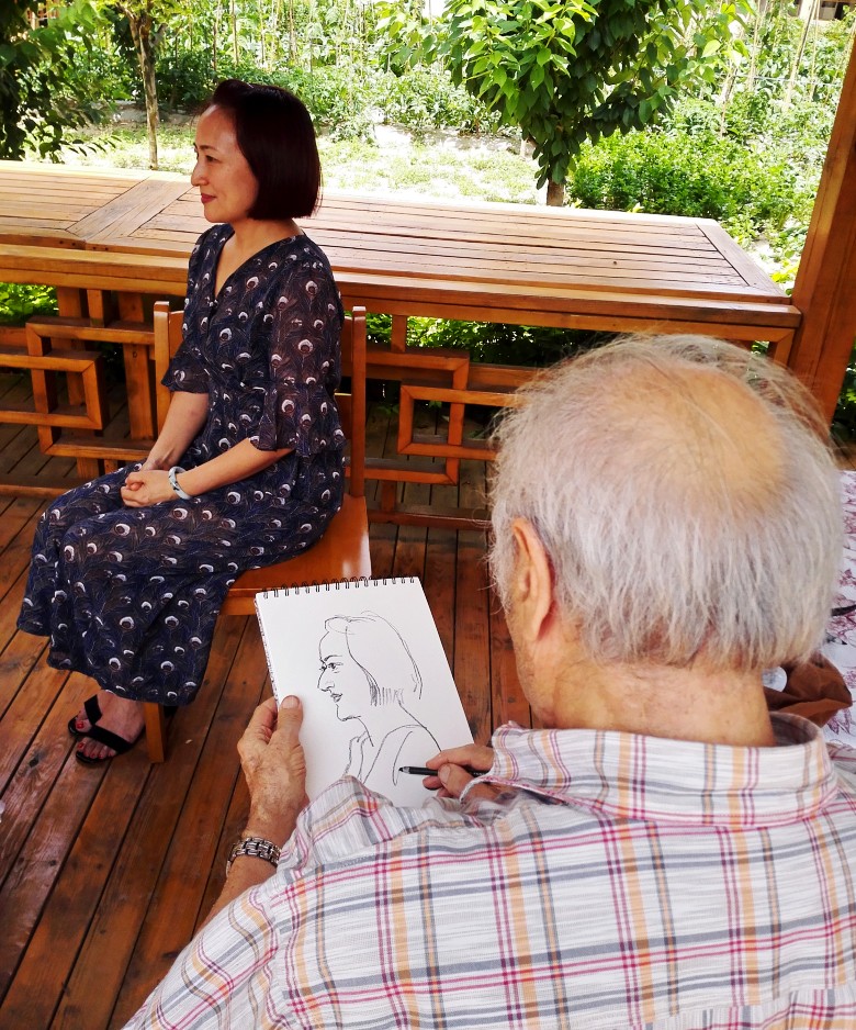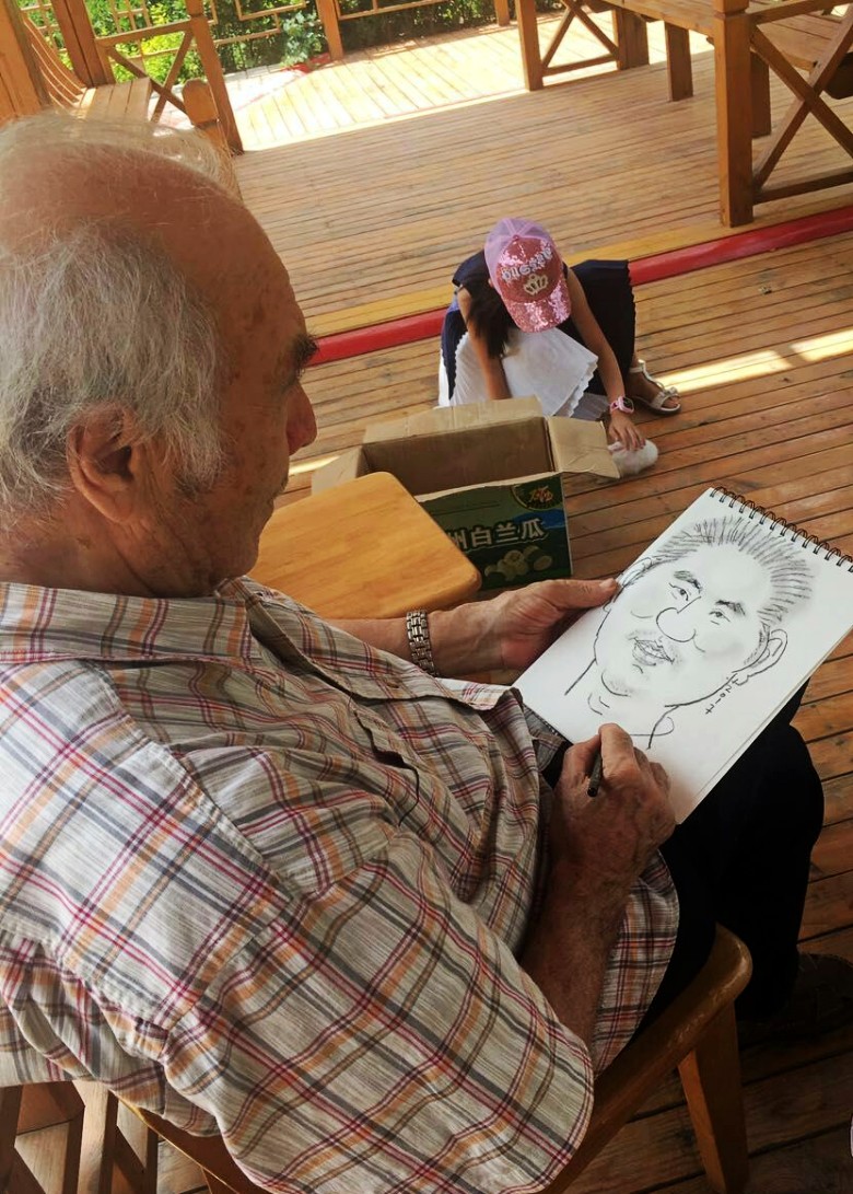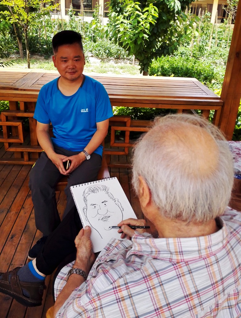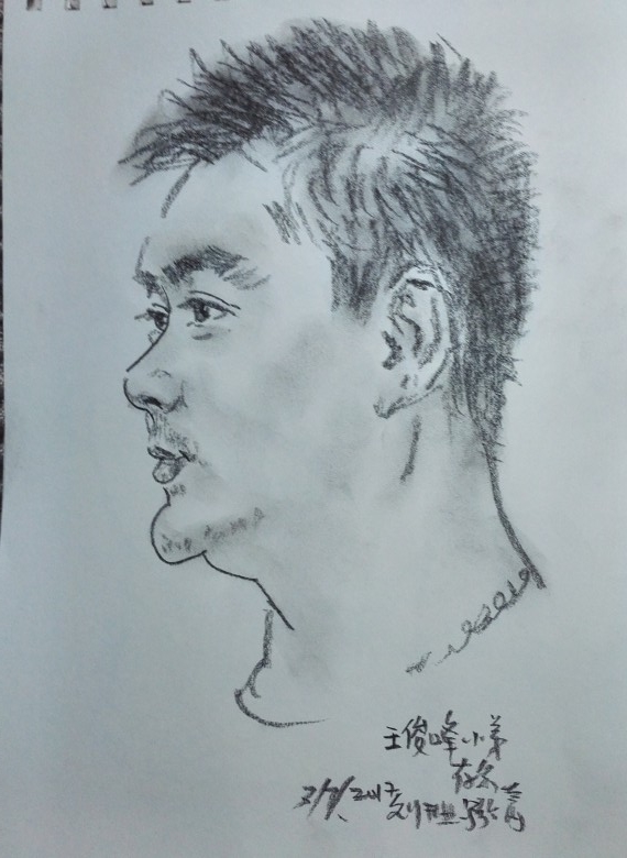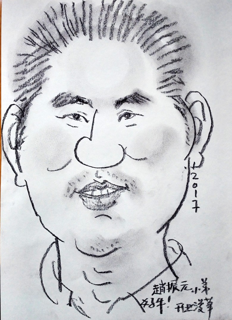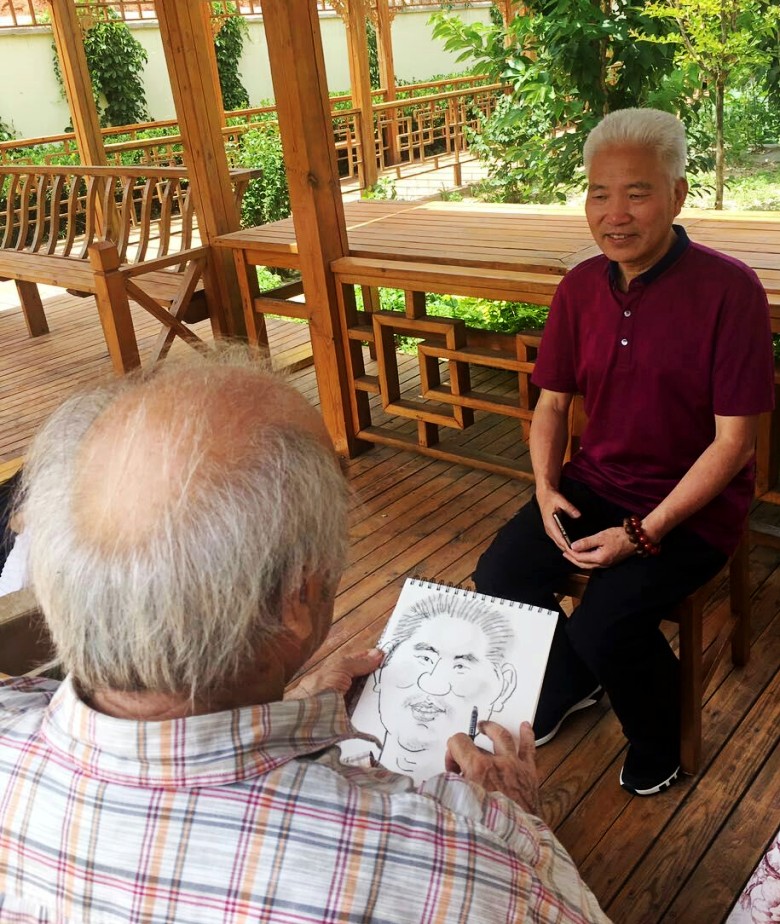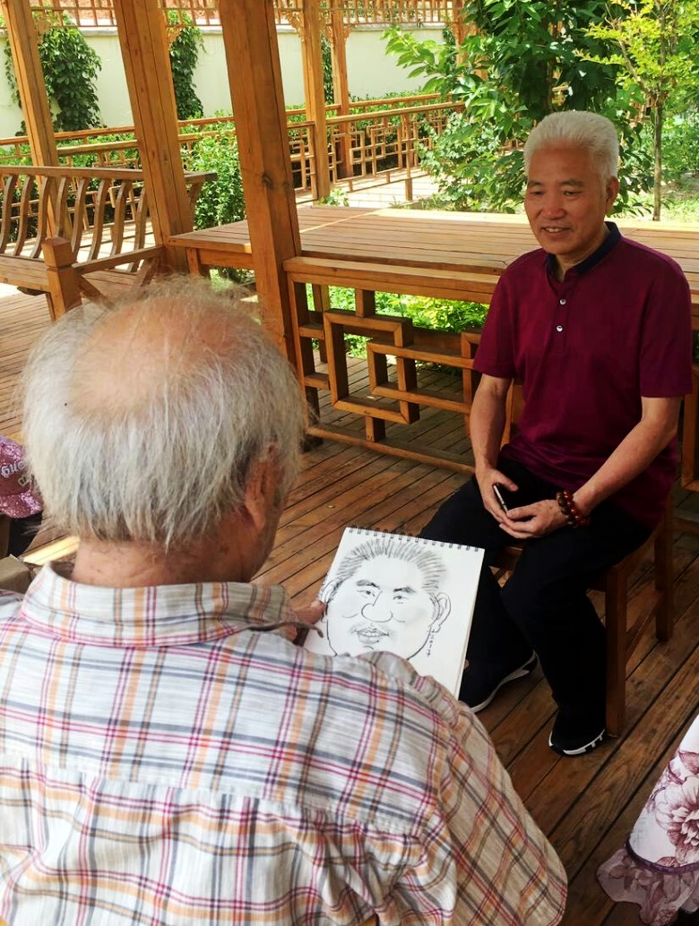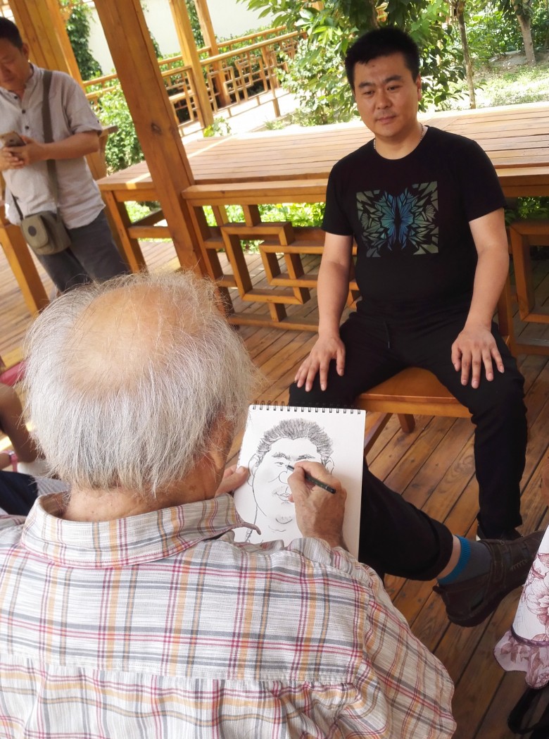 九十年代,我们曾在兰州秋田会馆举办的“龚建新画展”见过面,20多年过去了,他还是那么精神,谈笑风生。吃过午饭,刘先生兴趣很高,主动要求给我们每人画一幅漫画像,留作纪念。