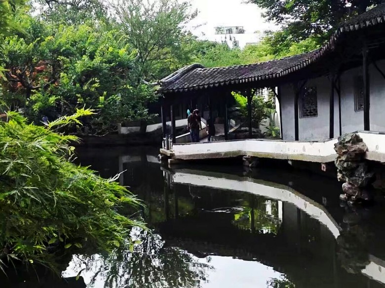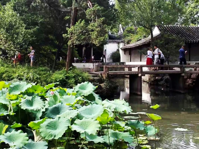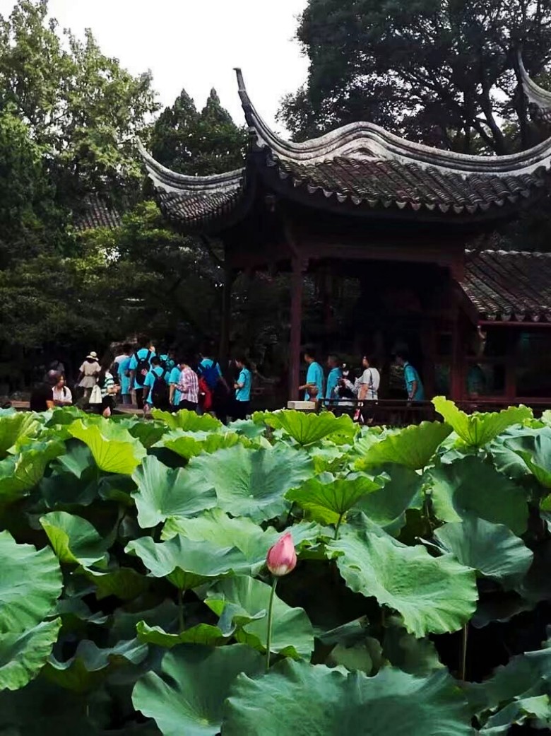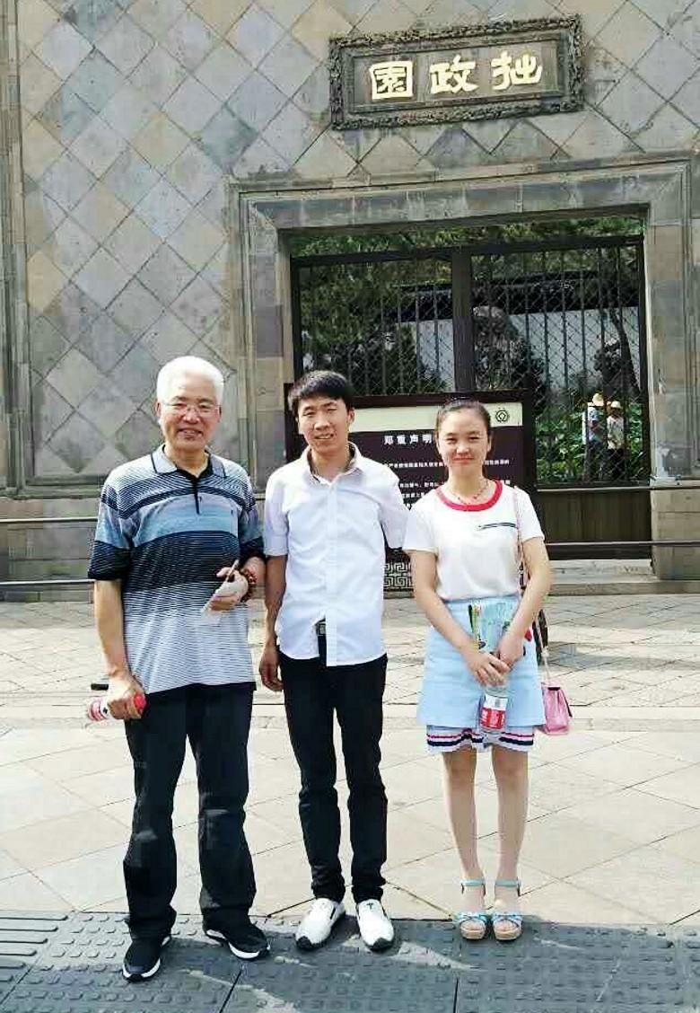 2017年7月5号,应上海书画家园网的邀请,我赴江苏宜兴参加“书画家园网宜兴艺术运营中心暨刘俊英艺术馆开馆庆祝会”活动。6号中午,我乘坐火车抵达苏州。我的外孙小两口在苏州迎接我,安排好住宿后,我们在火车站北广场附近简单吃了点饭,就打滴滴前往拙政园参观游览。