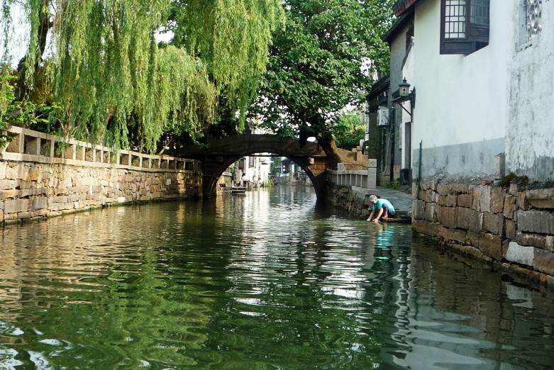 游完拙政园,我们又乘船观赏苏州水乡的小桥、流水、人家。老艄公一高兴,给我们来了两段苏州评弹。