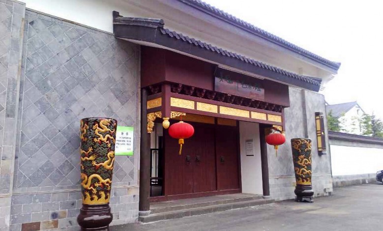 吴冠中艺术馆座落于风景秀丽的龙背山麓,规划总用地123.3亩,规划总建筑面积12096平方米,建筑布局及建筑风格为传统园林院落式,7幢白墙黑瓦的江南仿古建筑古朴典雅,尽显吴冠中江南水乡风情画作中的意境和韵味。建筑外立面采用江南水乡典型的白墙黑瓦格调,建筑空间尺度宜人,格调古朴典雅。周围山清水秀,自然环境十分优美。