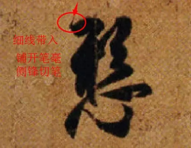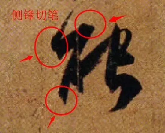 我以为孙过庭的这种笔法是《书谱》中执、使、转、用,几种笔法的综合应用,即由中锋转换为侧锋、用力下按笔心后迅速提笔转换为中锋形成墨迹形态的突变特征。实际上不是什么新笔法,就是二王的中锋、侧锋的快速转换时的突变笔法。