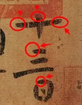 咱们一起看一下王羲之的这些墨迹,起笔的地方都有一个小尖尖的线,其实这就是切入的痕迹。这么说吧,这个小尖尖就是笔毫进入纸的第一个动作,他的作用是把笔毫打开,或者叫做把笔毫压开。(提示一下:把笔毫打开非常重要!)