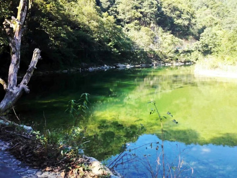 7日清晨,我们散步来到阳坝镇阳坝河畔,沐浴在秋天温暖怡人的晨曦下,婀娜的柳树宛如对着河面梳妆打扮的少女,岸上已经有人影在晃动,阳坝河一天中的宁静,也就会被那个在岸边经营日子的人给打破了,万物生,生万物,大自然的神奇,就在于它生生不息的生命。坐在一块大石头上,卸下浮躁的心情,享受着大自然赐予的温情与抚爱,我早已深深陶醉,四周秀美的山峰,清澈的河水,让我感觉这里就是真正的人间仙境。