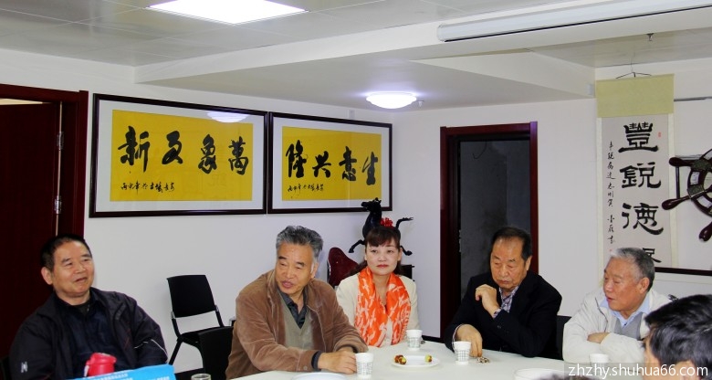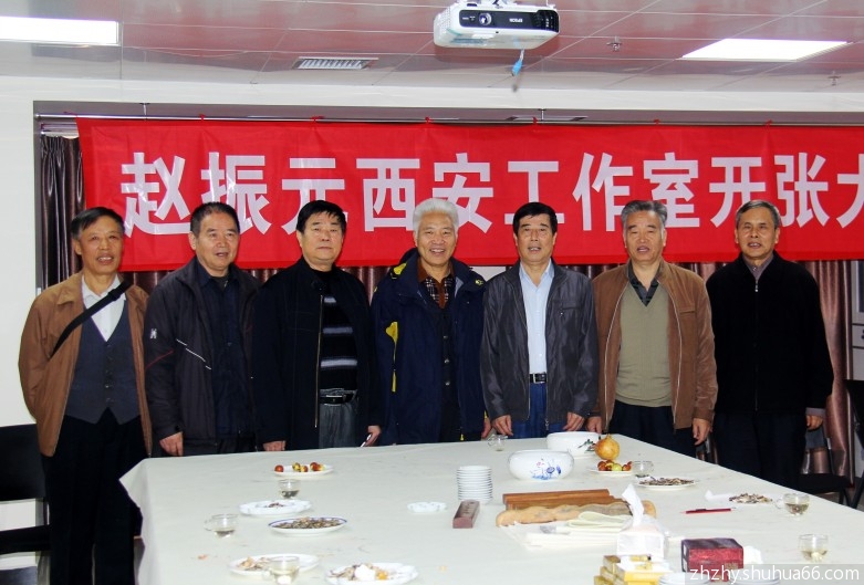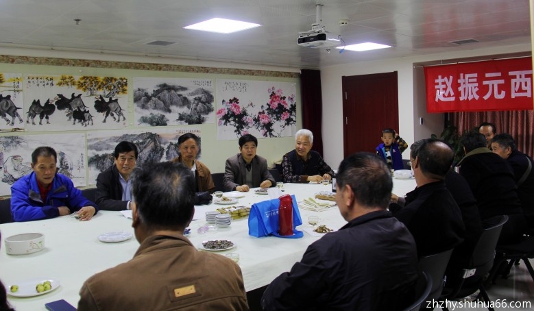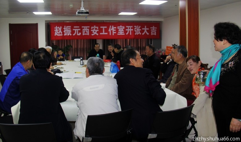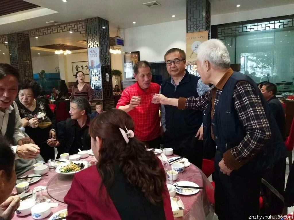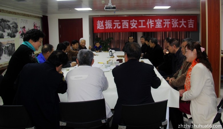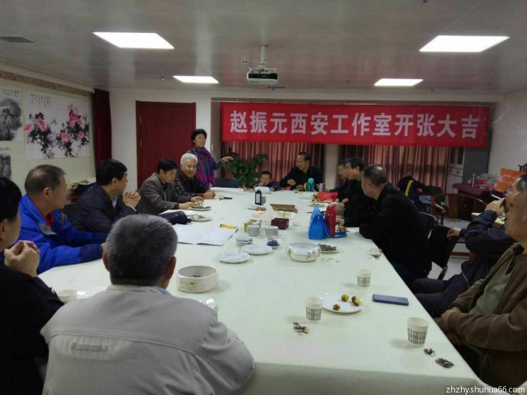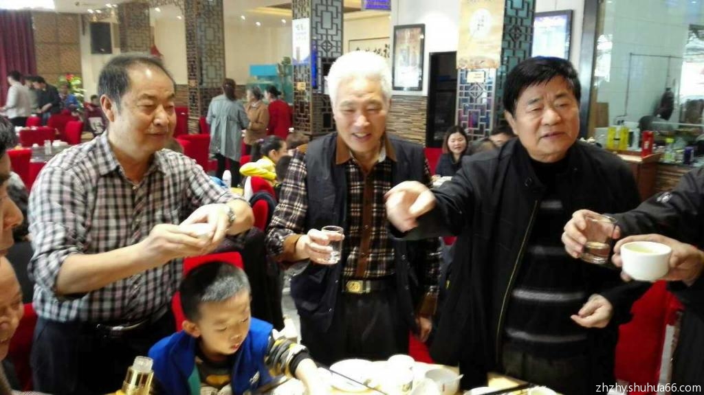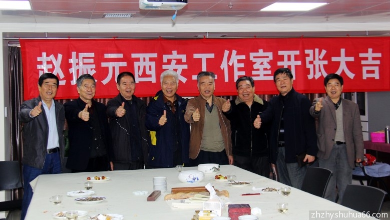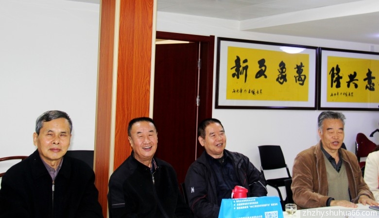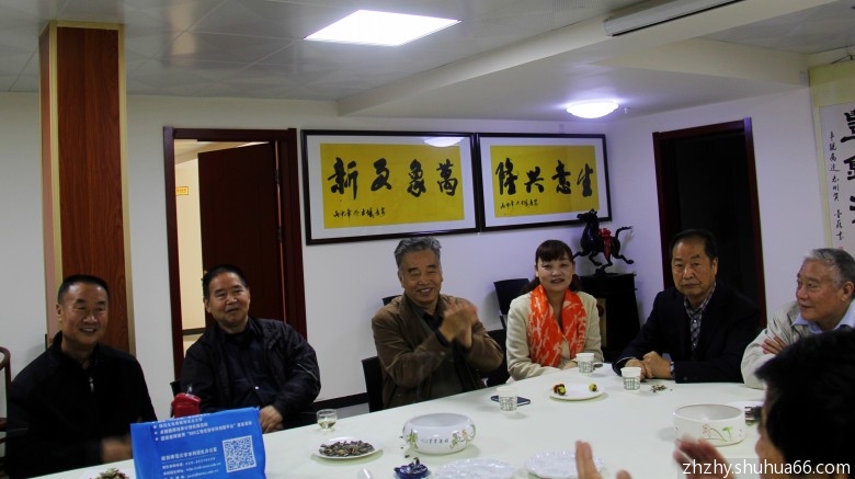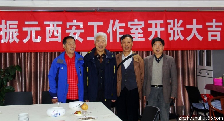 2017年10月22日,原西安外国语学院俄语系七二级部分同学来到我的工作室,共叙友情,姜华同学感慨即兴赋诗一首:“贺振元西安工作室开张大吉:半坡古遗又逢君,同是窑大宦游人,群雄霸聚帝王地,五十年度又一春。锲而不舍水穿石,字画双绝古鉴今。不时再剪西窗雨,重议富县总销魂。”
