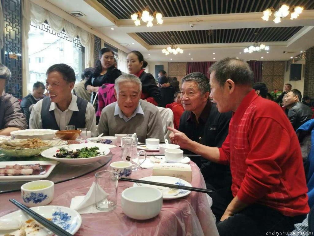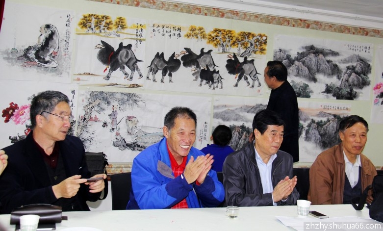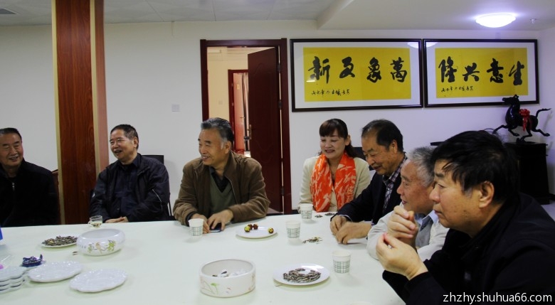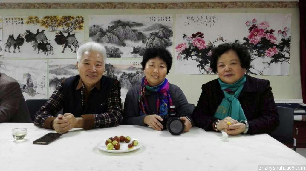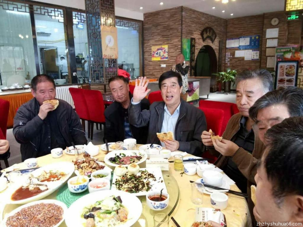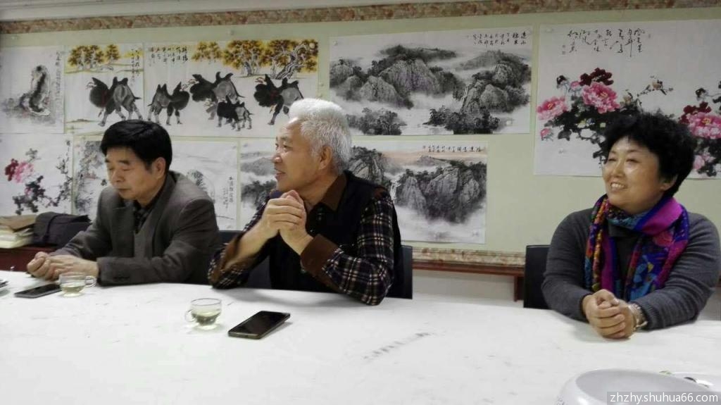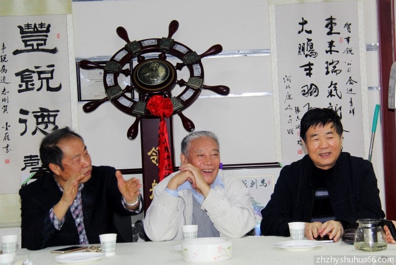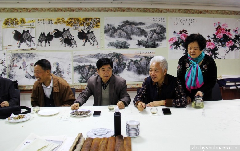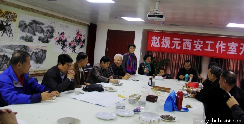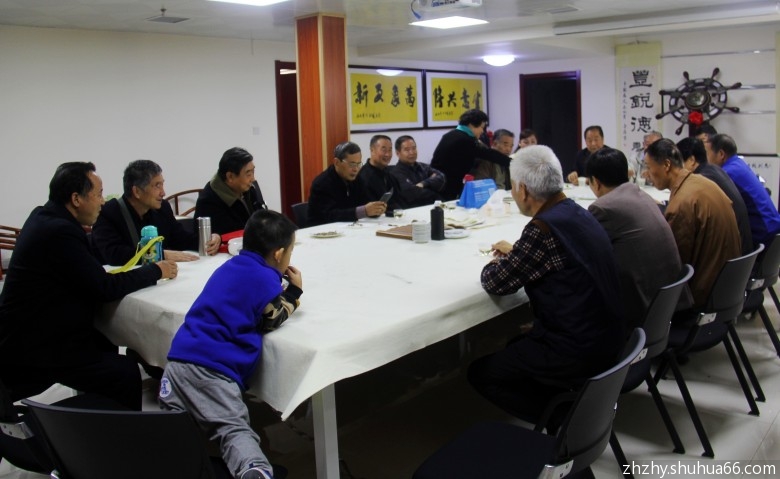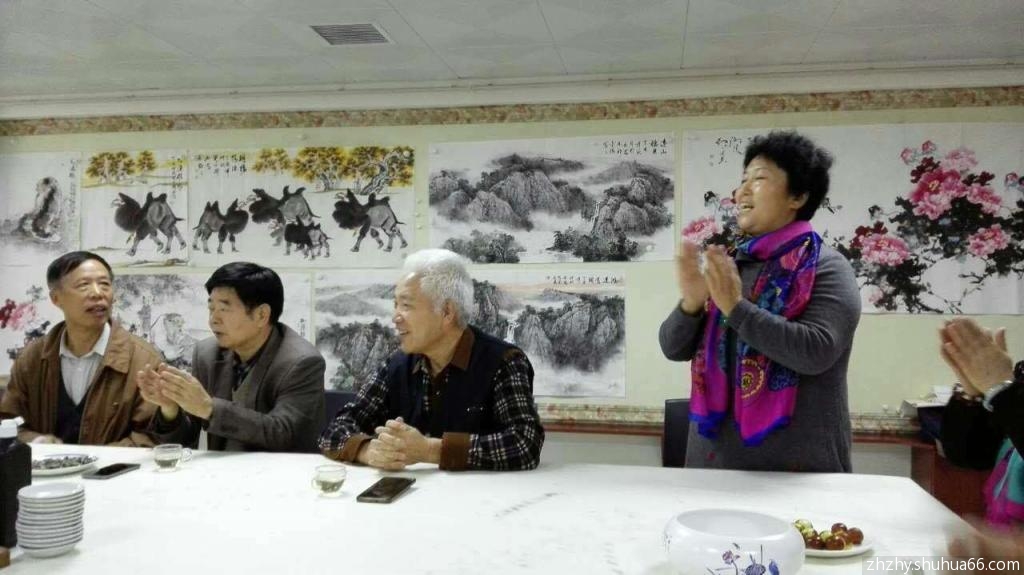 2017年10月22日,原西安外国语学院俄语系七二级部分同学来到我的工作室,共叙友情,姜华同学感慨即兴赋诗一首:“贺振元西安工作室开张大吉:半坡古遗又逢君,同是窑大宦游人,群雄霸聚帝王地,五十年度又一春。锲而不舍水穿石,字画双绝古鉴今。不时再剪西窗雨,重议富县总销魂。”