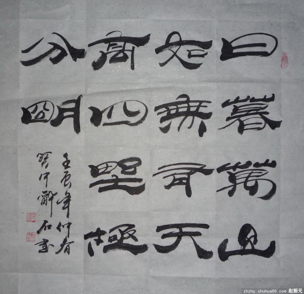 每天都有新作是我的一贯坚持。退休后,我才成为一名“专业”书画家,除了工笔画以外,写意和书法每天都要搞上几幅,主要是活动筋骨,抒发激情。昨天写了几幅隶书,请大家点评。下面这段文章是宁夏省军区政治部副主任、著名军旅作家晓音先生在2004年发表的《黄河边上的一块“醉石”》里对我的评论片段,请欣赏。
