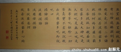 《心经》是佛经中字数最少的一部经典著作,因其字数最少、含义最深、传奇最多、影响最大,所以古往今来无数艺术家都倾注极大精力和虔诚之心,把《心经》创作成为异彩纷呈的艺术品。今上传我书写的楷书《心经》,请欣赏。